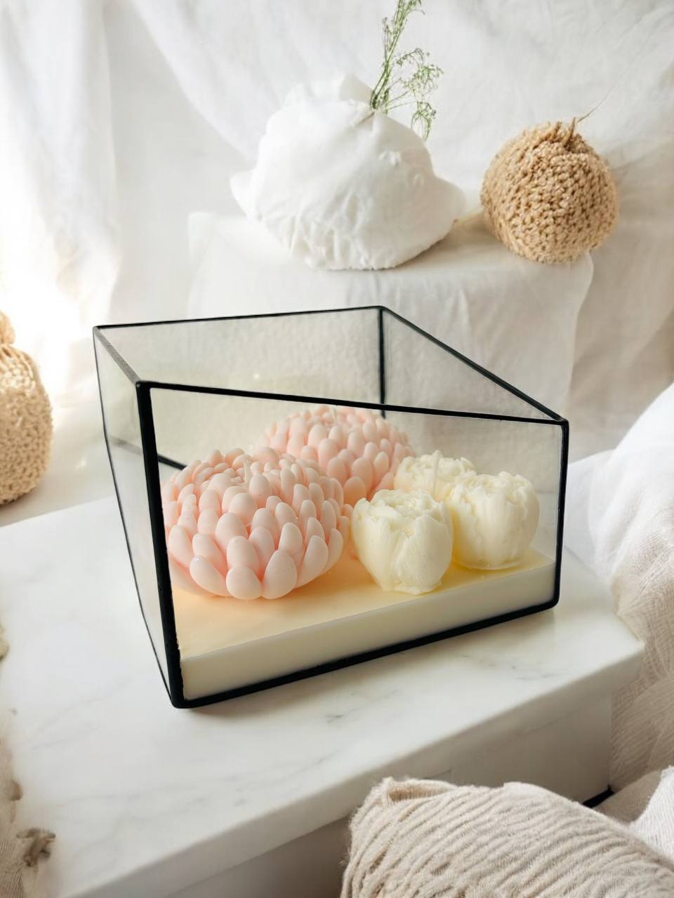 Аромасвічка GENTLE (Pink) у склі — це поєднання м’якого світла, спокійної естетики та делікатного квіткового аромату, що створює атмосферу тиші й внутрішнього балансу. Вона наповнює простір теплом, допомагаючи уповільнитися й зосередитися на моменті.