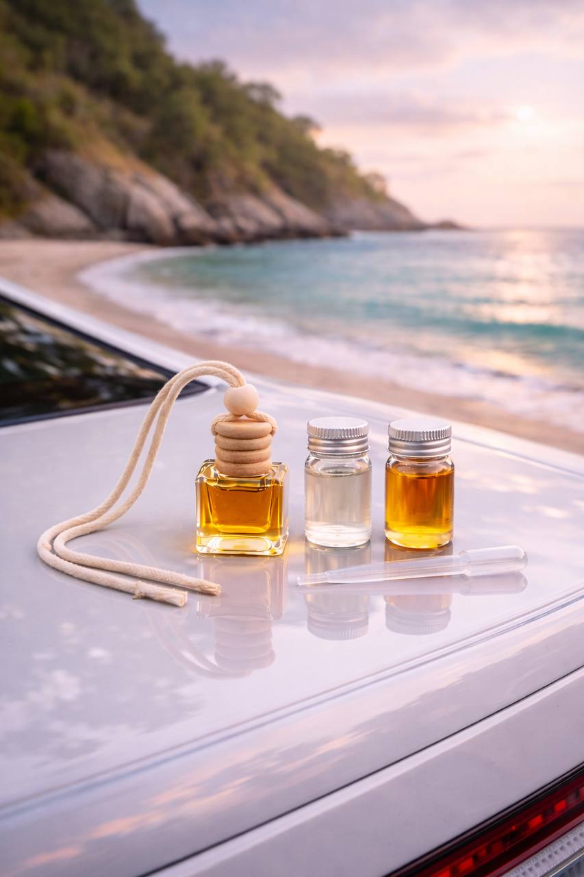 Набір поєднує автомобільний дифузор, два запасні флакони аромаолії та піпетку — зручний формат для регулярного використання.
