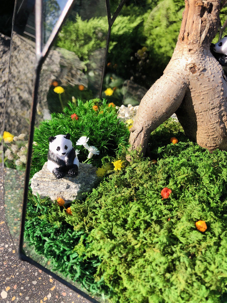 Мосаріум з деревом Бонсай та стабілізованим мохом «Panda Land» 45×28 см