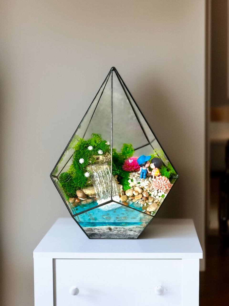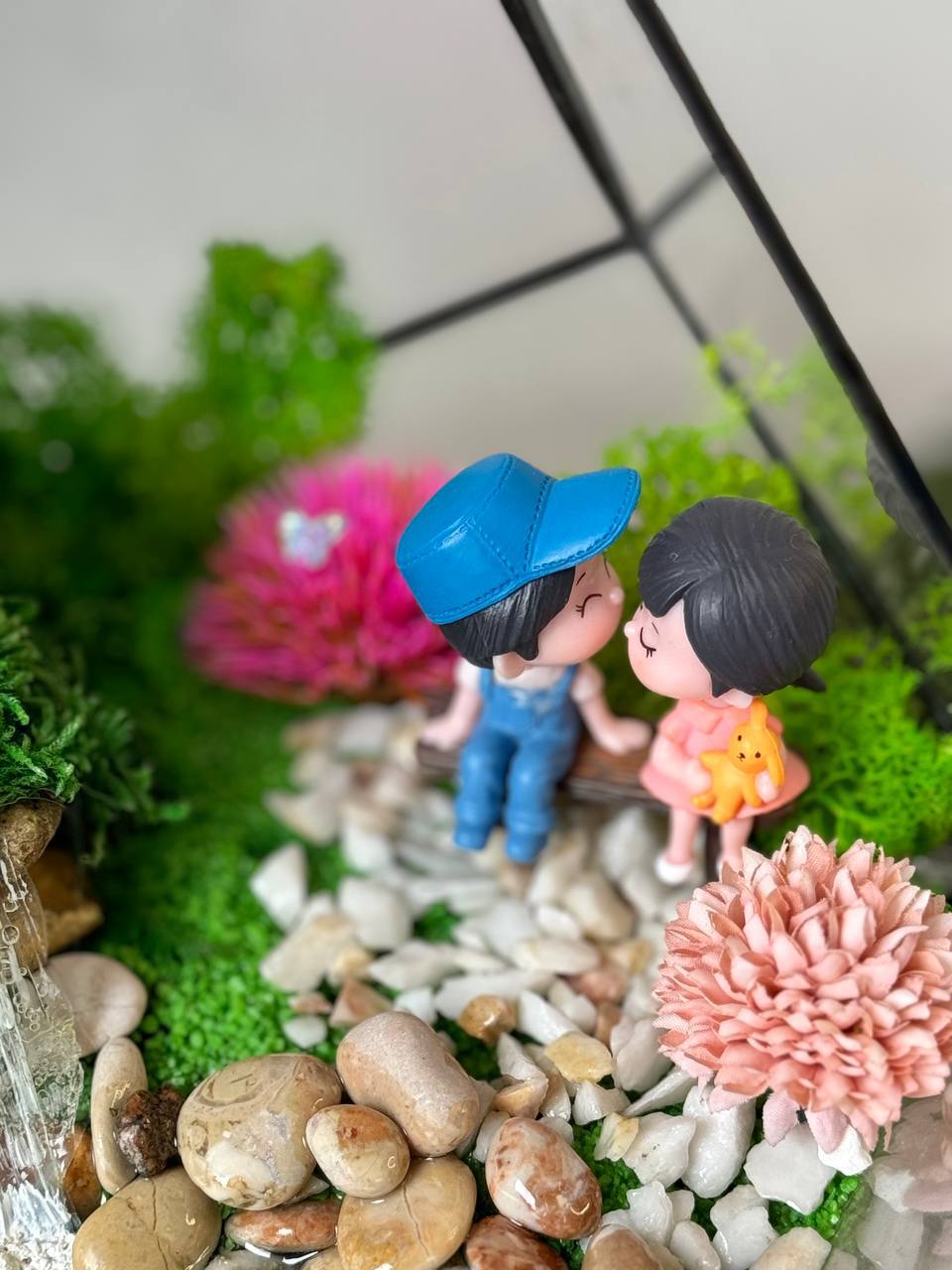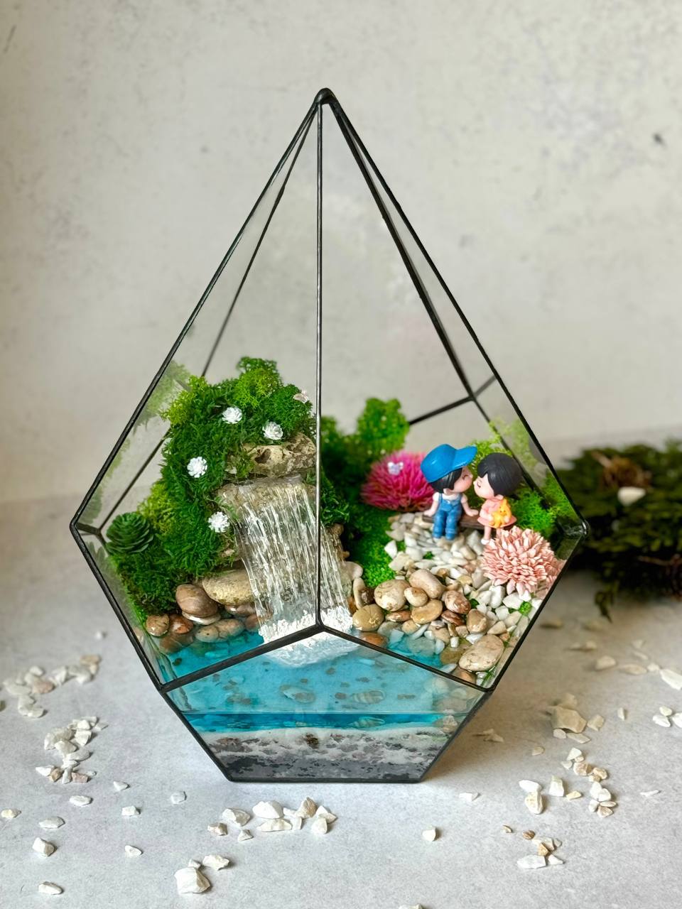 Мосаріум «Love is…» — це маленька історія про близькість, турботу й тепло, захована у скляній формі. Композиція створює відчуття затишного світу, де панує спокій, ніжність і тиха радість бути разом.