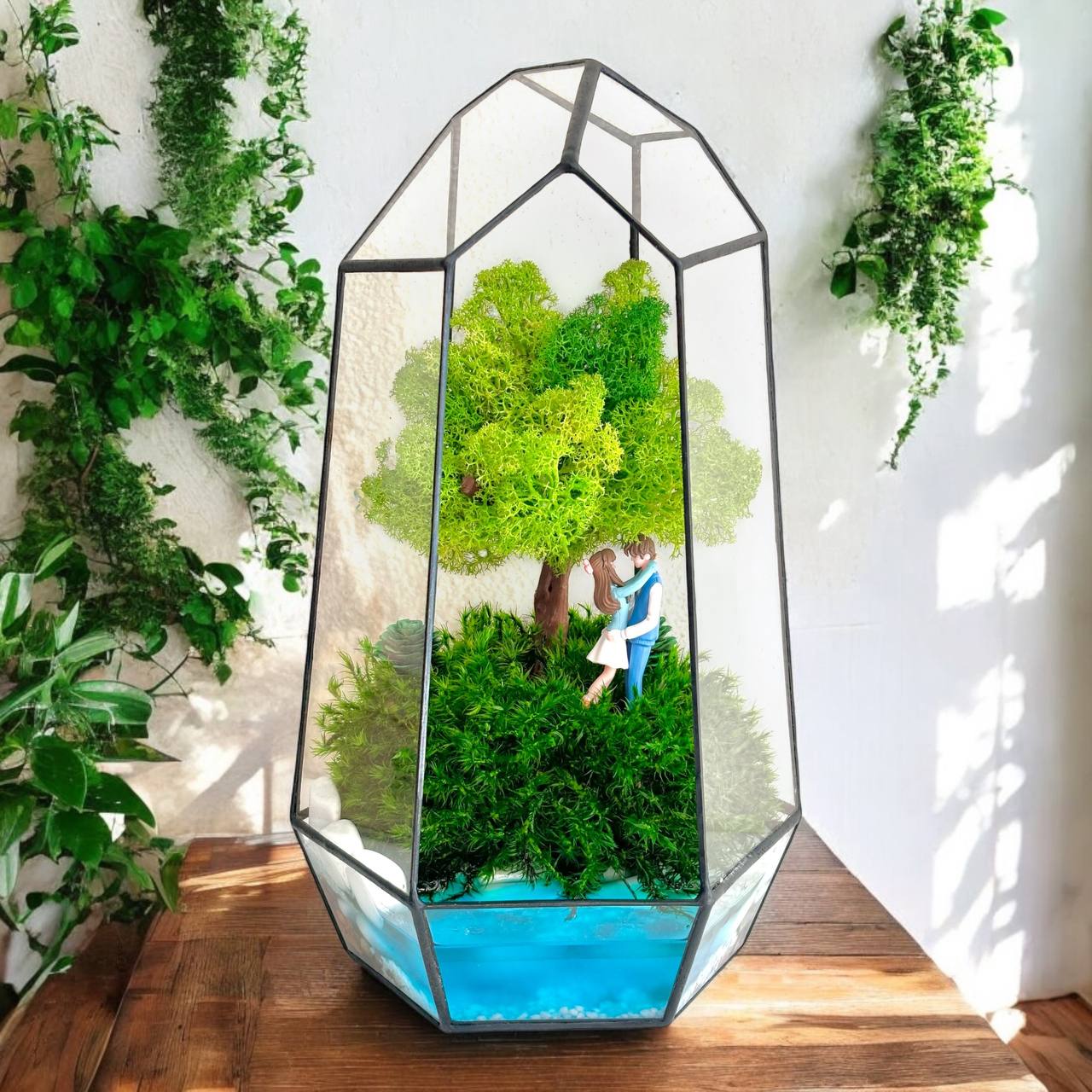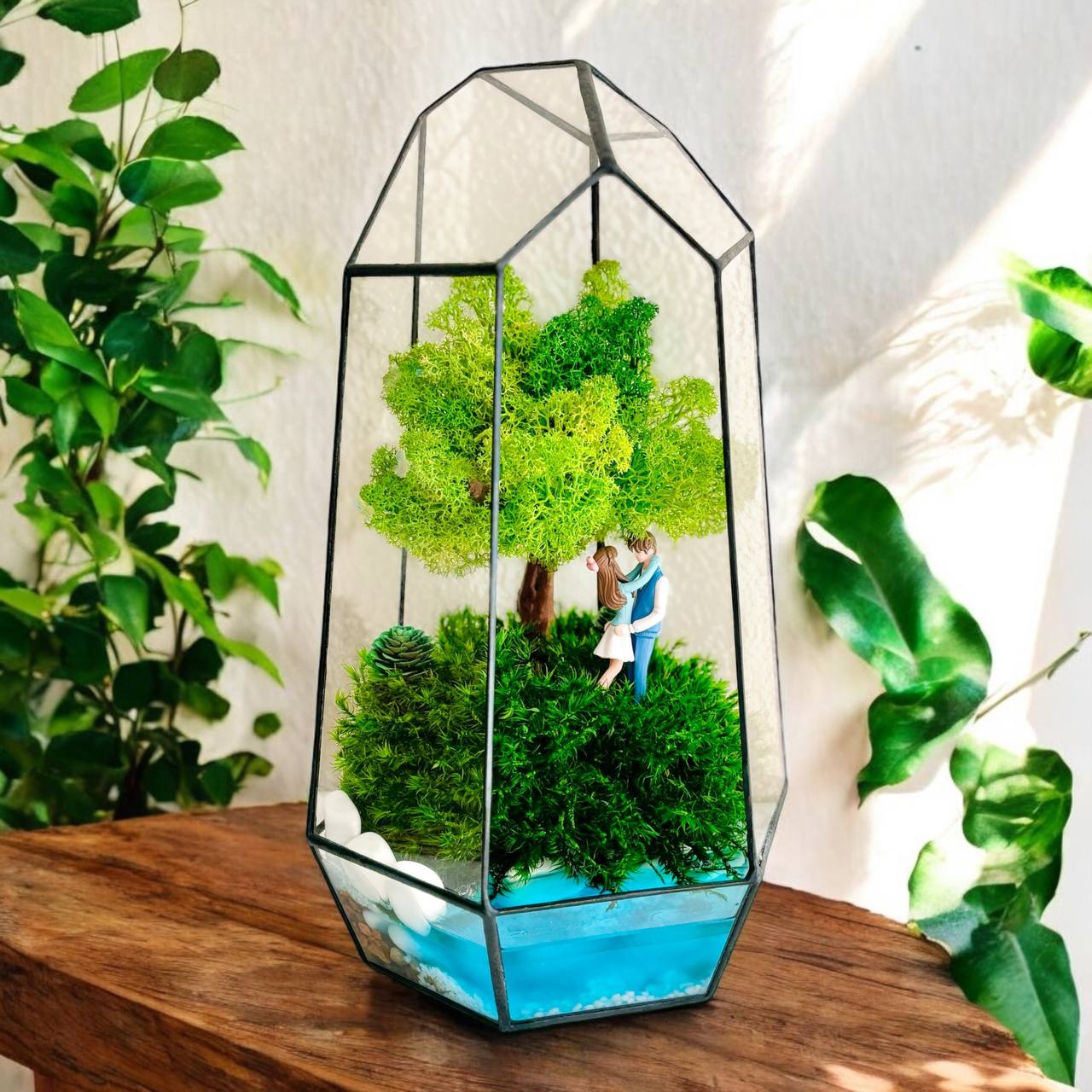 Мосаріум Tenderness — це витончена композиція зі стабілізованого моху та декоративних елементів, що втілює відчуття м’якості, спокою та природної гармонії. Лаконічна форма й прозорі грані створюють візуальну легкість і дозволяють композиції стати делікатним акцентом інтер’єру.