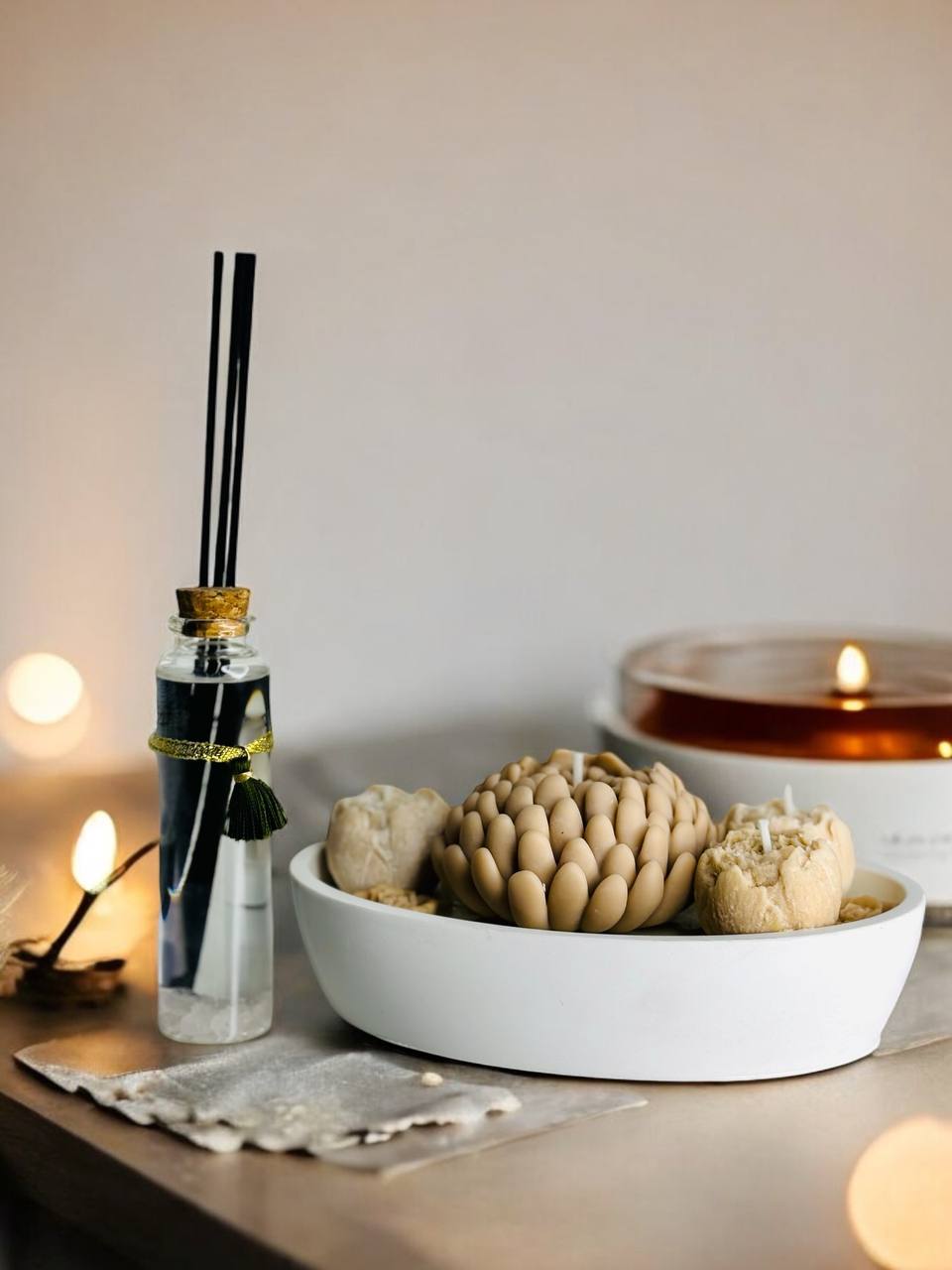 Теплий, обволікаючий аромат і м’яке світло створюють особливу атмосферу спокою та затишку. Цей набір поєднує аромасвічку та аромадифузор, щоб простір наповнювався улюбленим ароматом не лише під час горіння, а й протягом усього дня.